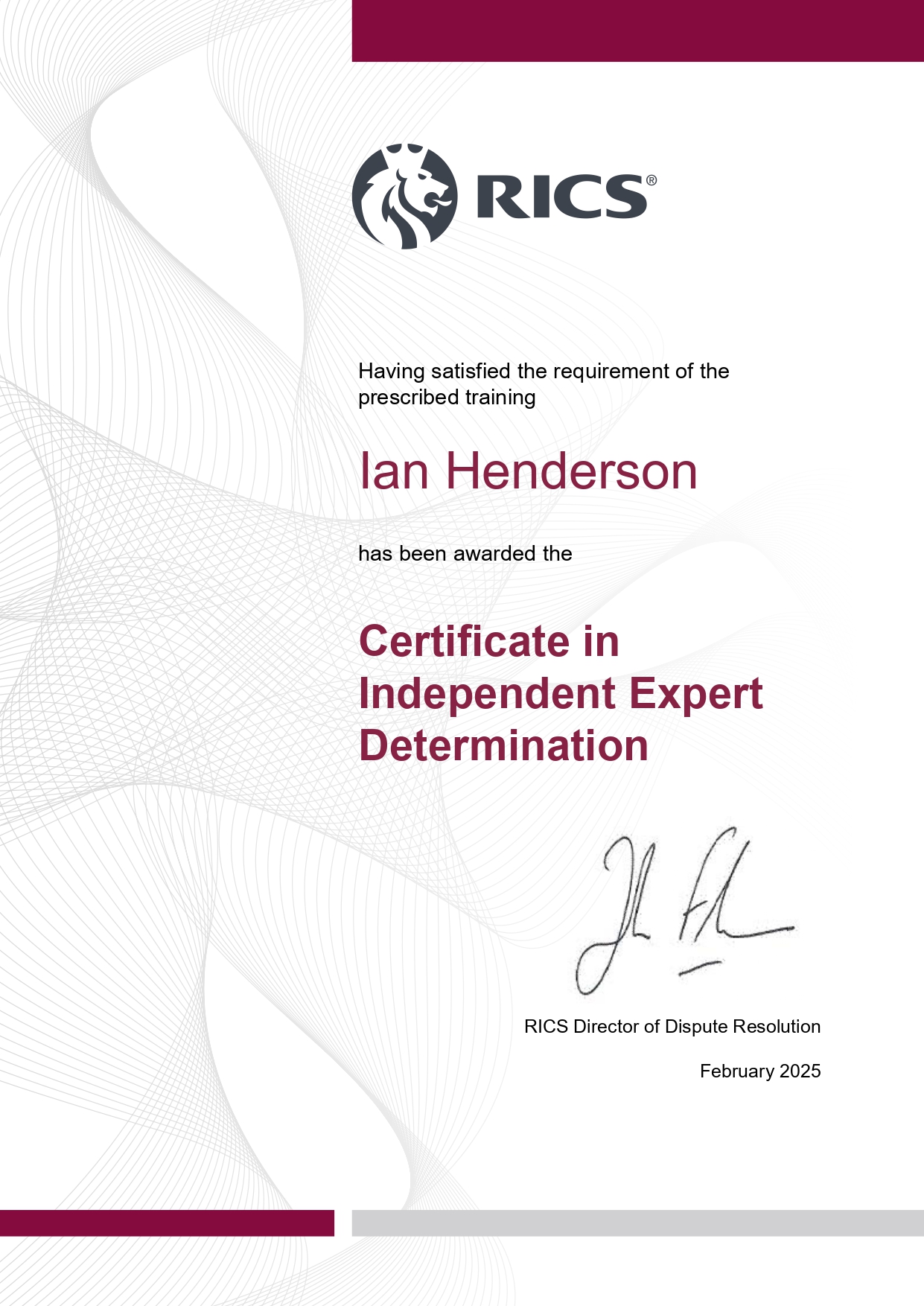 Ian became a professional member of The Royal Institution of Chartered Surveyors in 1987 and a member of The Chartered Institute of Arbitrators in January 2000.